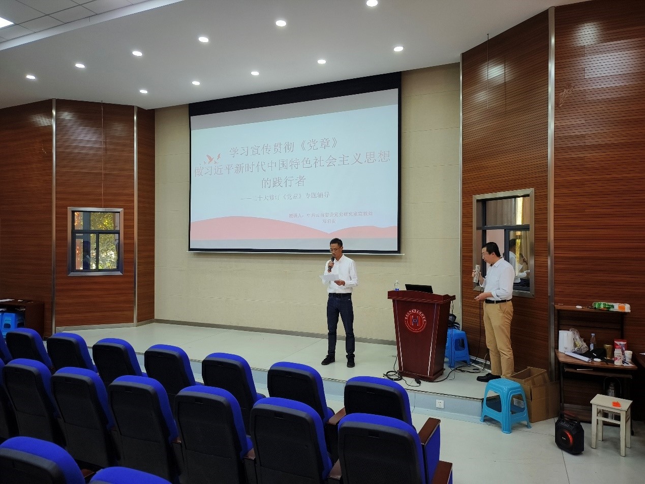 2023年10月27日星期五下午,威廉体育官方网站邀请到中共云南省委党史研究室邓启贵副处长,在格物楼3103报告厅开展 ““解读二十大精神——学习宣传贯彻《党章》”主题讲座”。公司党委书记徐瑾主持本次讲座。