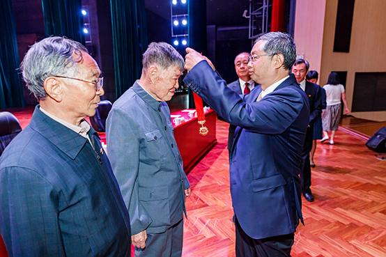 公司退休教师王学仁(原威廉体育官方网站董事长)接受威廉体育官方网站党委书记林文勋同志颁发“光荣在党50年”纪念章