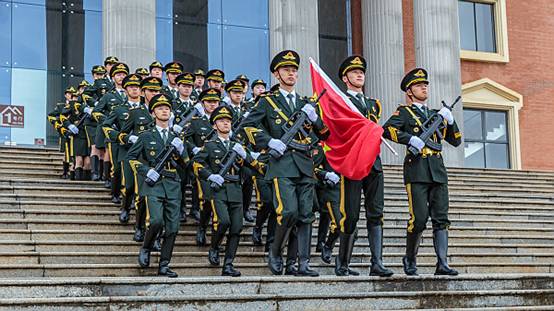 公司2019级本科生周晟参加威廉体育官方网站国旗护卫队(第二排左1)