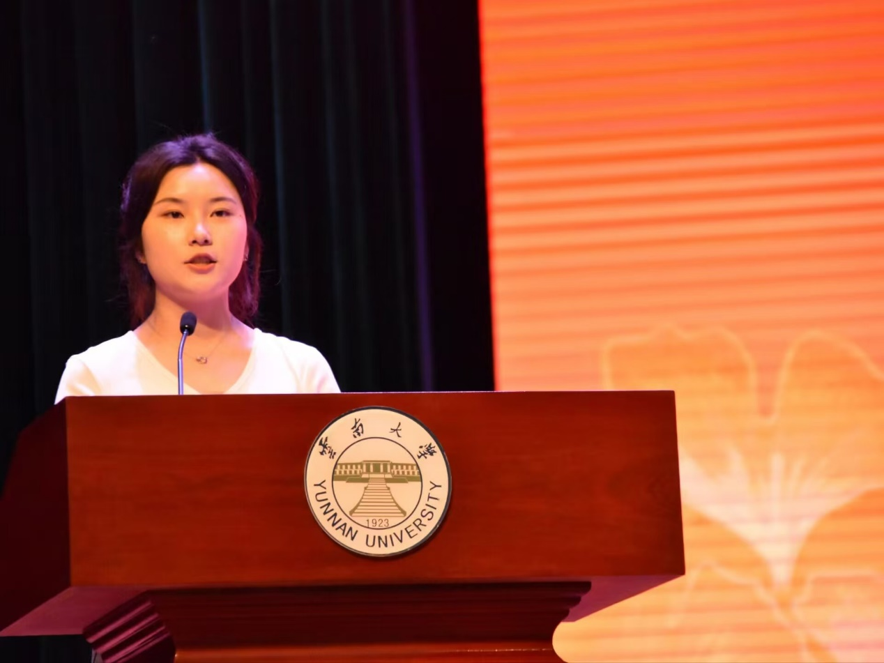 2021级本科生罗丽兰作老生代表发言。她讲述了自己的大学经历,分享了如何在学业与生活中找到平衡,如何在各种活动中发掘自己的潜力;呼吁同学们要自我学习,独立思考,找准自己的节奏,合理支配自由时间,塑造自我,追求梦想,让老员工活变得更加充实和精彩。