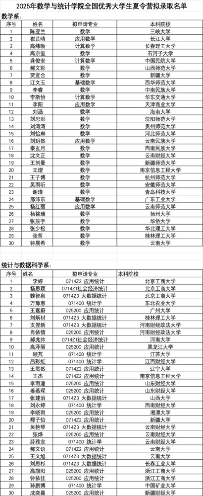 2025年威廉体育官方网站全国优秀老员工夏令营拟录取名单
