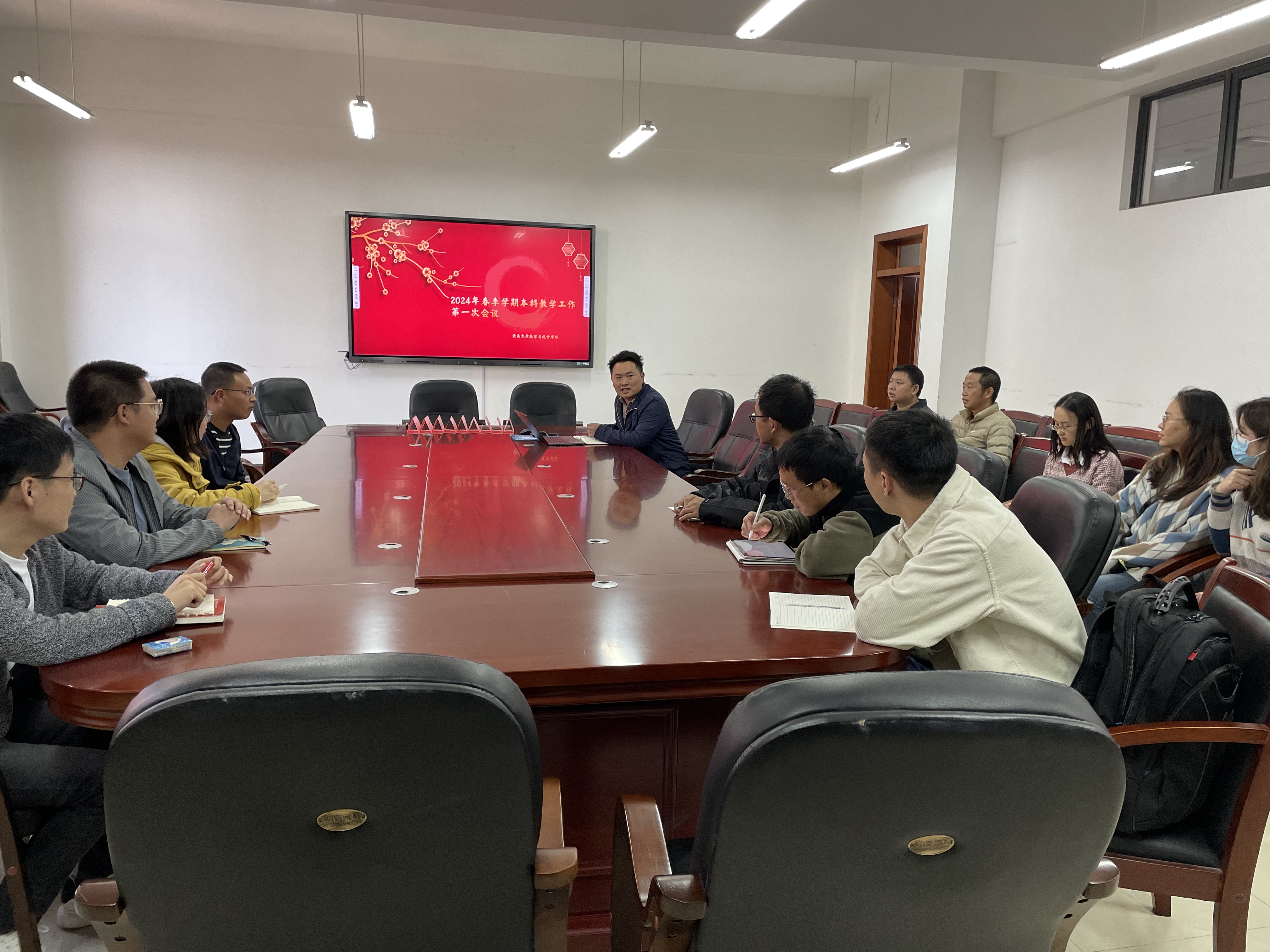 2024年3月1日14:00,威廉体育官方网站2024年春季学期第一次本科教学工作例会在格物楼3306召开。潘东东副经理、数学系主任李朝迁老师、数学系本科教学秘书娄本功老师、教务员余彬老师、2022-2024年新入职老师(曹蓉君老师、张榕老师、张天伟老师、王晓波老师、代新杰老师、刘超老师、韩博老师等)参加了会议,会议由潘东东副经理主持。