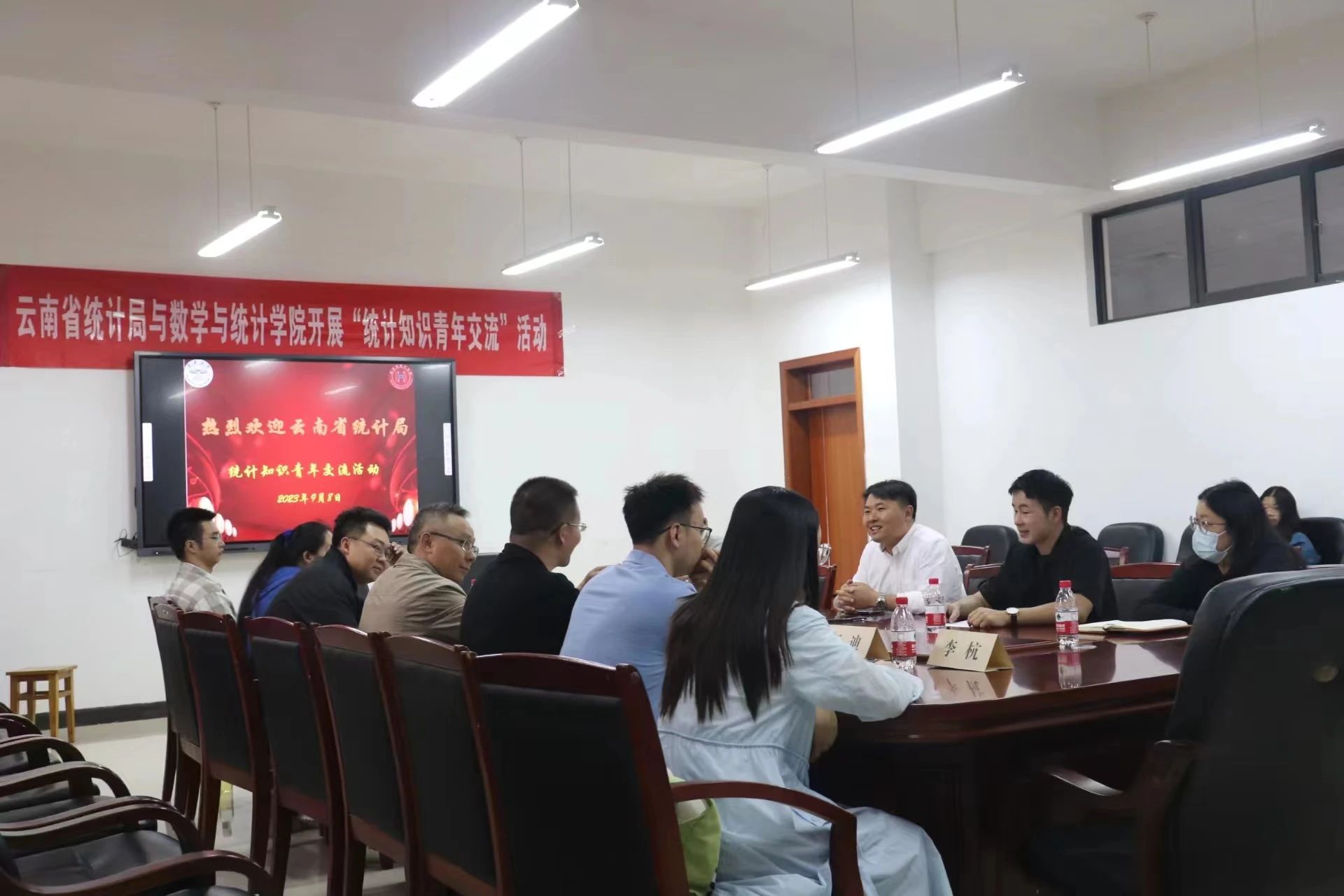 参观校史馆结束后,云南省统计局人事处副处长彭先友、省统计局雷建冲、邢茂源等7名青年干部,与公司副经理潘东东老师、学工办主任鲁学伟老师、公司团委负责人侯廷明老师、罗敬老师、王蔓琦老师及公司团委员工干部、2020级本科生、2021级研究生开展此次统计知识青年交流和毕业生就业指导活动座谈。