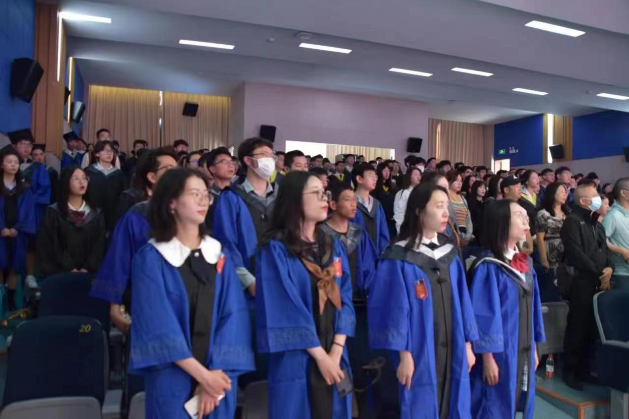 毕业典礼在庄严的国歌歌声中拉开帷幕。