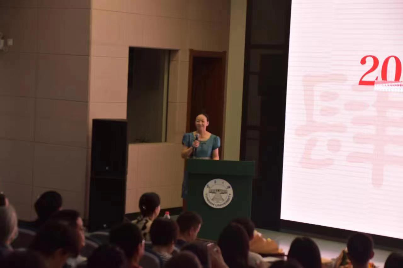 毕业生家长代表张谊女士致辞,她表示父母的支持与爱护是同学们求学路上最强大的支持,希望所有毕业生心存感恩、心怀梦想,矢志不渝、奋斗不息。