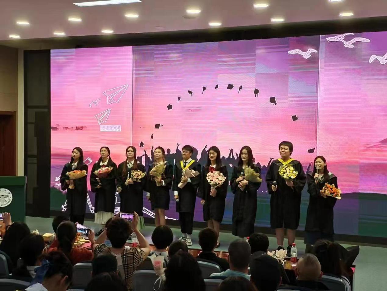 接着,毕业生班主任彭程老师代表公司教师向全体毕业生的顺利毕业表示祝贺,并在致辞中谈到与同学们在学习生活中不少难忘的时光,同时也对同学们四年的努力表现给予认可,相信同学们未来可期,不负众望,不负韶华。千言万语汇成一句话,希望同学们的明天更加灿烂辉煌。