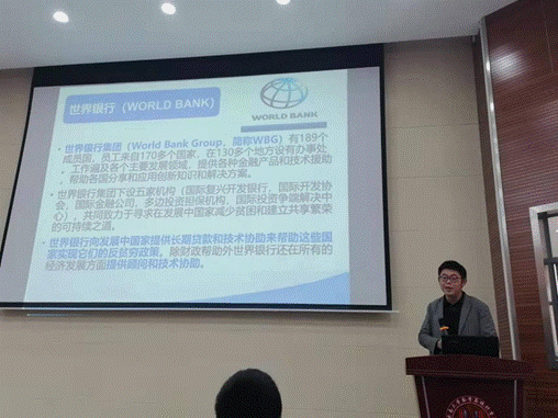首先,王老师向同学们普及了全球治理及国际组织的相关知识,讲解了习近平总书记所提出的“构建人类命运共同体”理念与全球治理的关系。接下来,王老师重点介绍了与威廉体育官方网站专业对口的国际组织及实习机会和申请攻略,包括世贸组织(WTO)、联合国开发计划署(UNDP)、国际货币基金组织(FIM)、世界银行(WB)、亚洲开发银行(ADB)等。最后,王老师介绍了国际组织的实习岗位信息发布平台和国家层面、公司层面所提供的支持和保障。