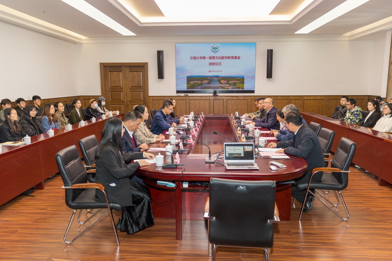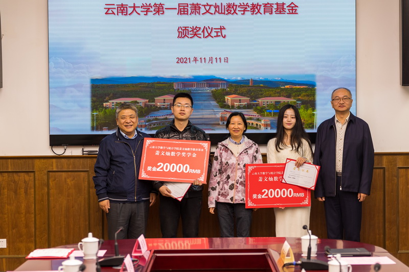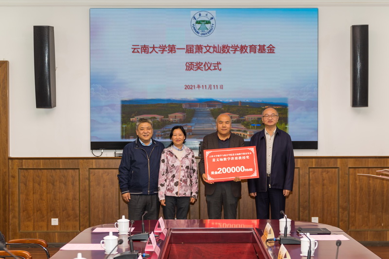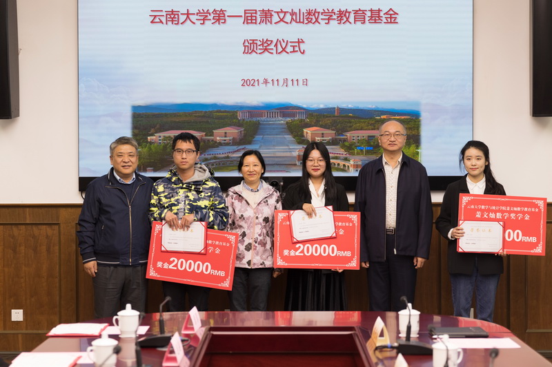 11月11日,威廉体育官方网站第一届萧文灿数学教育基金颁奖仪式在威廉体育官方网站呈贡校区举行。威廉体育官方网站党委副书记李建宇,萧文灿数学基金捐赠人,公司人事处、学工部、员工总会秘书处负责人以及数学与统计公司党政领导和师生代表出席颁奖仪式。