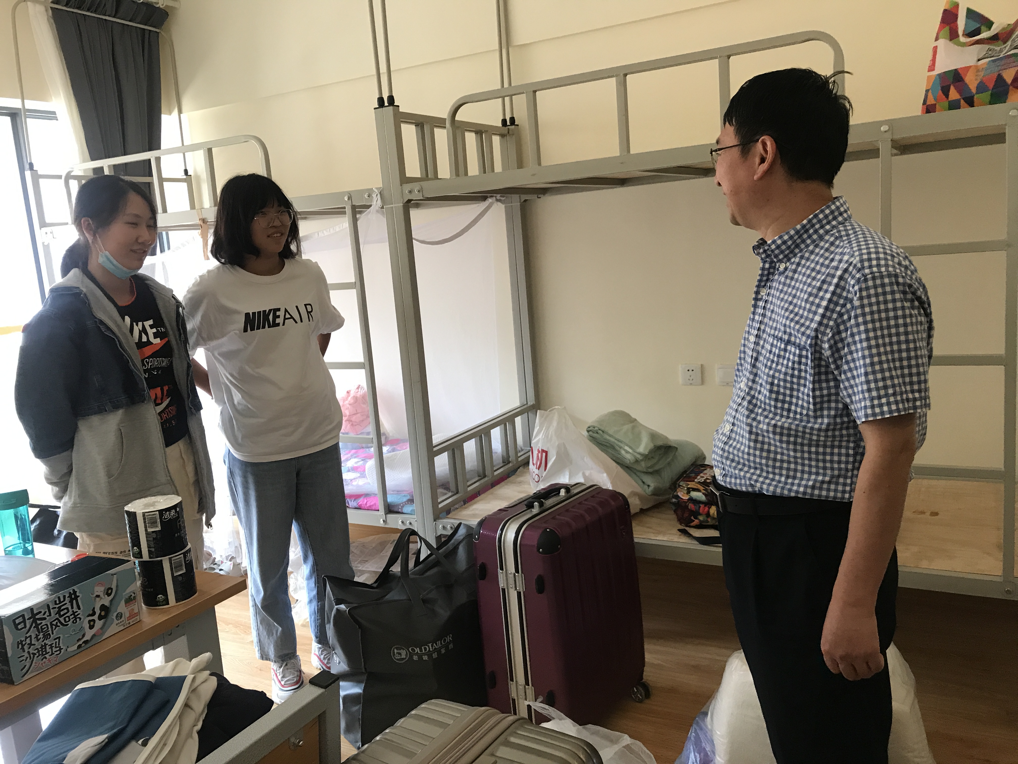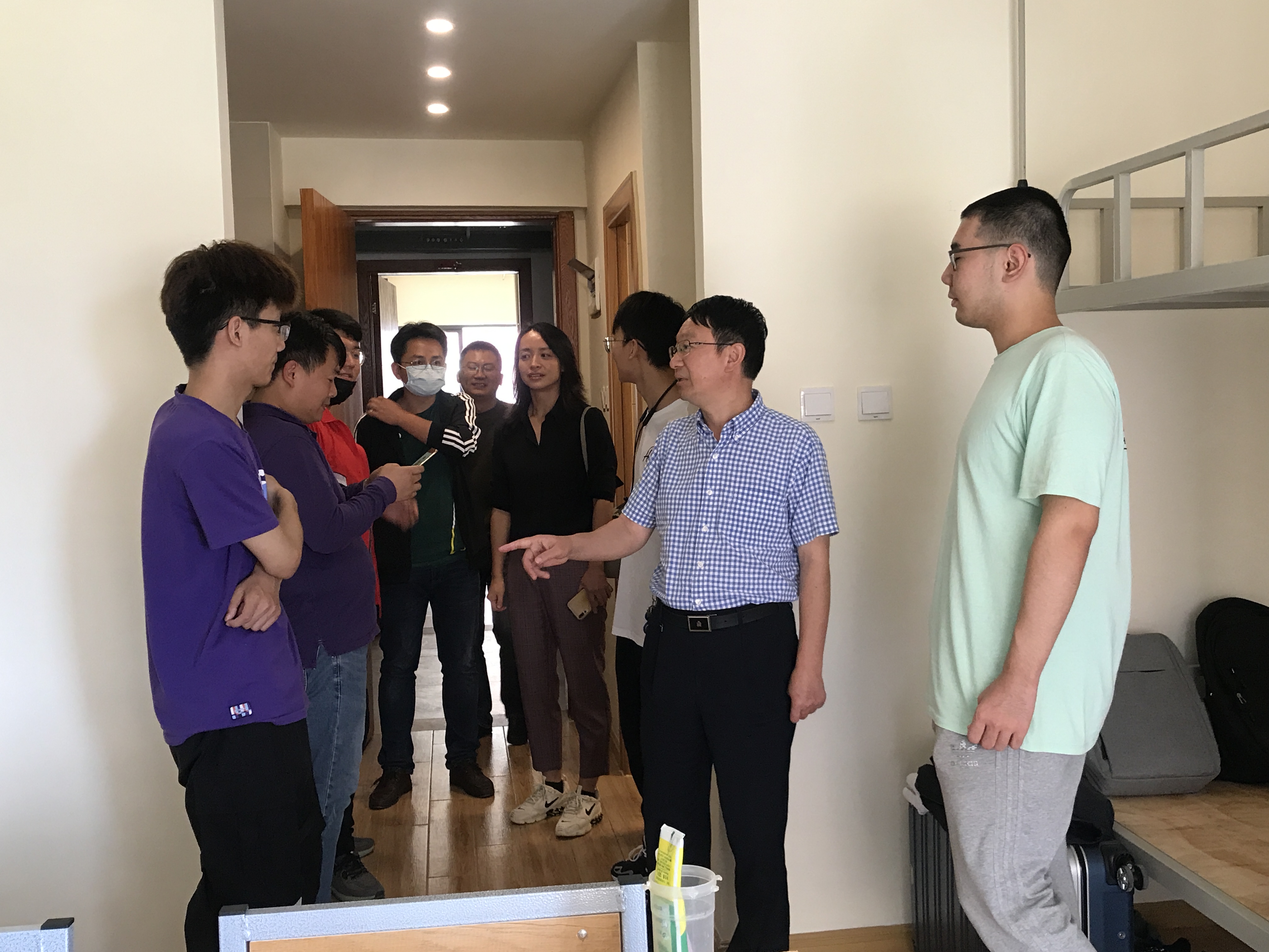 10日下午,威廉体育官方网站经理唐年胜,党委副书记杜芳芳,副经理潘东东,2020级本科生辅导员鲁学伟,2020级班主任李朝迁、刘进静来到员工宿舍看望新生。鼓励同学们认真学好专业,取得优异成绩。
