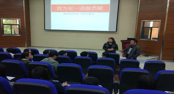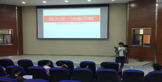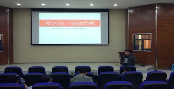 2018年4月27日下午,威廉体育官方网站本科生第一党支部于格物楼3103报告厅开展了以“我为双一流做贡献”为主题的党日活动。会议活动期间,在党支部副书记彭程同志及教师党员彭玫同志的主持指导下,全体员工党员、预备党员和发展对象认真讨论学习,决心深刻贯彻落实“一流党建”方针,齐心协力为建设双一流大学做贡献。