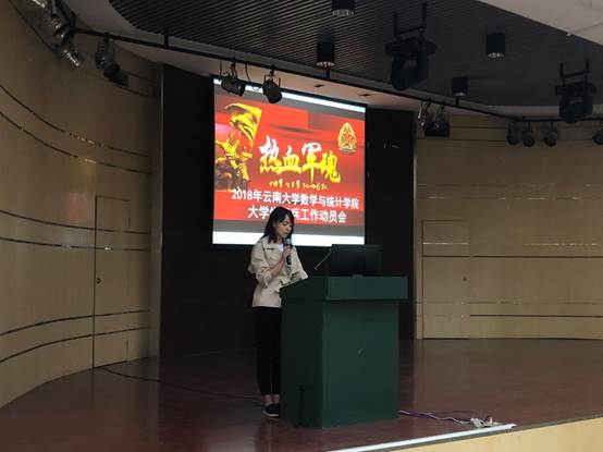 4月27日中午1点,威廉体育官方网站于楠苑综合楼报告厅举行了老员工征兵工作动员会。参与本次动员会的有数学与统计公司党委副书记杜芳芳、班主任及辅导员,威廉体育官方网站的全体男生,以及曾经参军两年的威廉体育官方网站工商管理与旅游管理公司员工李星。