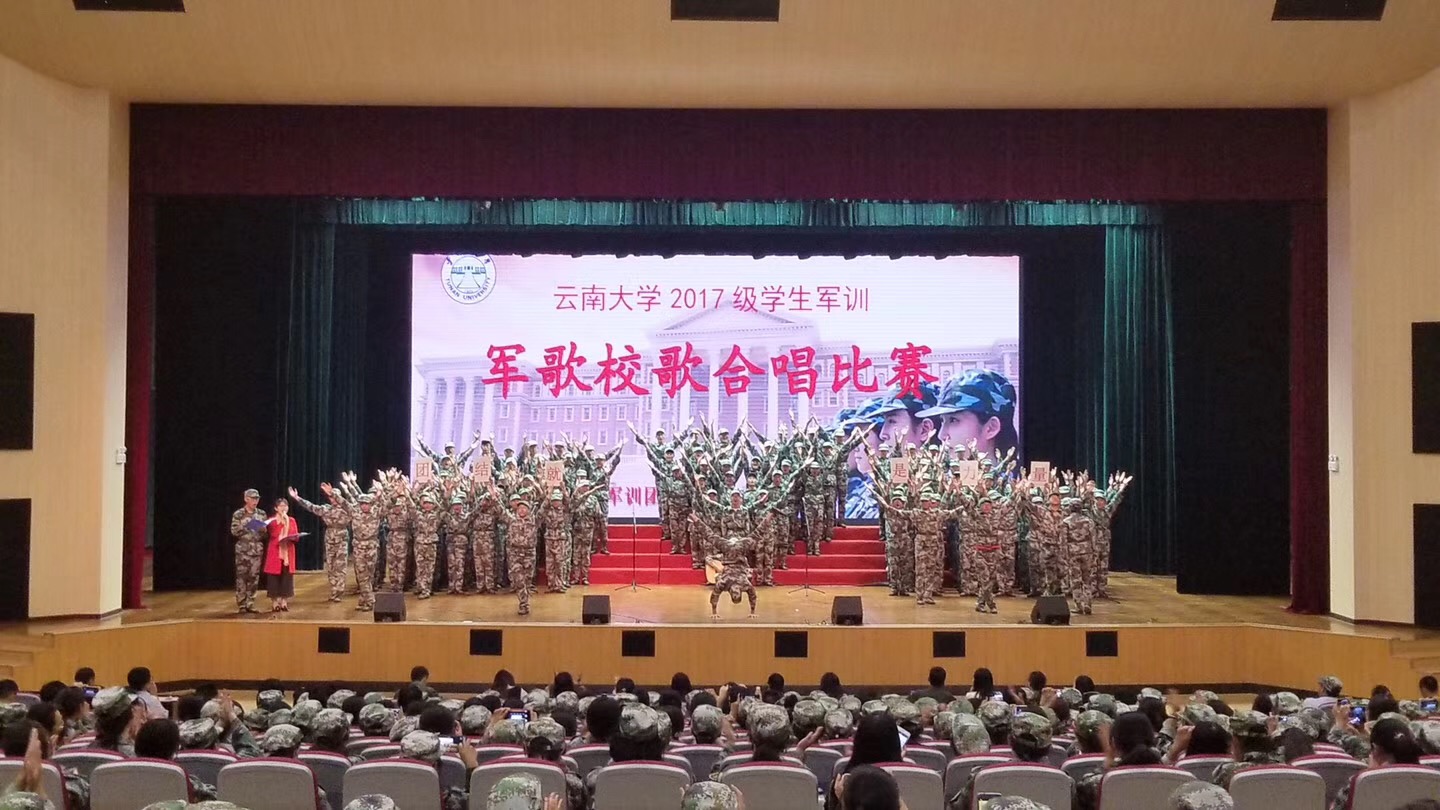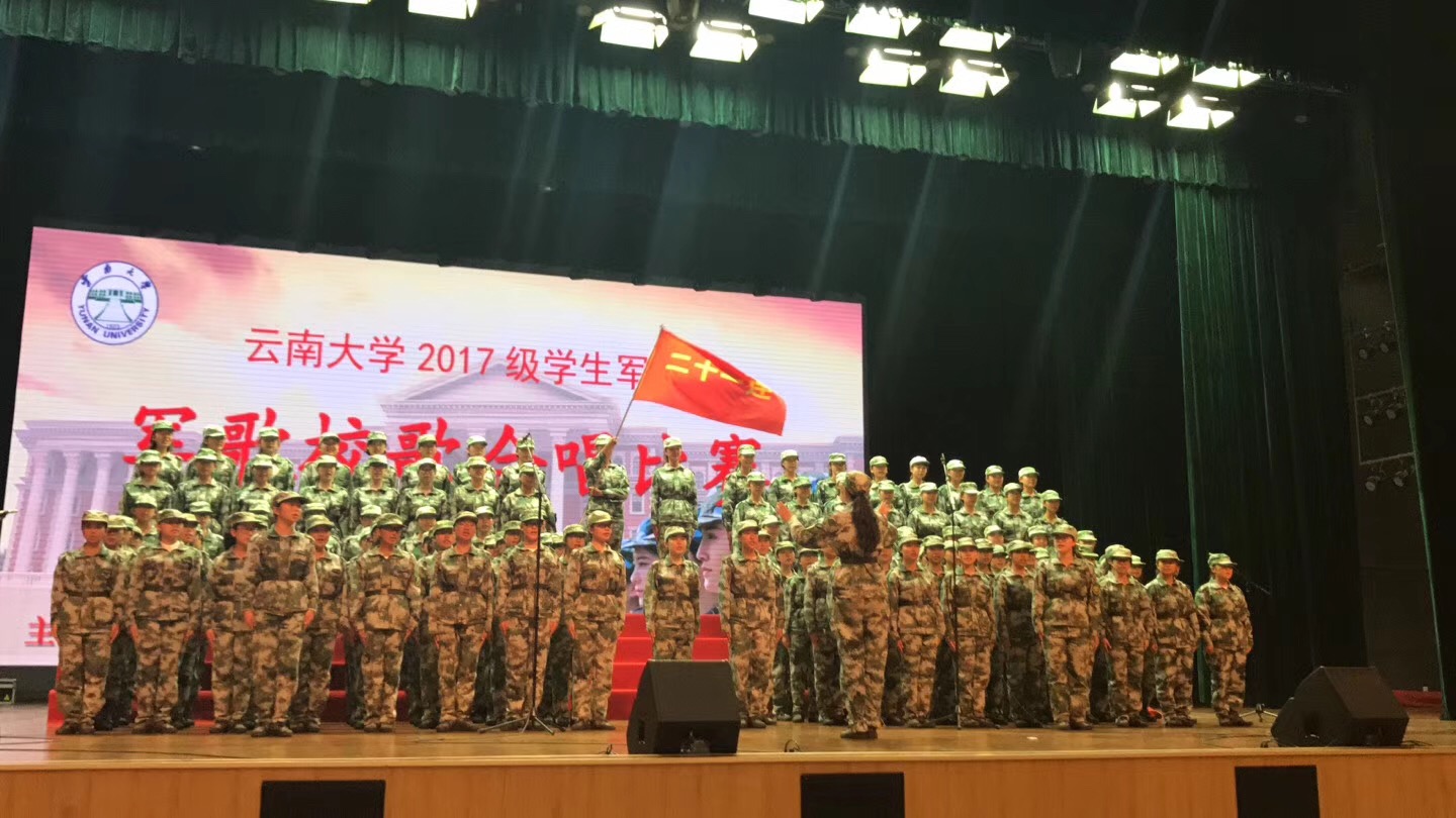 在比赛中公司新生连队精神饱满、斗志高昂,用他们整齐的列队、飒爽的军姿、嘹亮的歌声接受着来自教官、老师和同学们的掌声。威廉体育官方网站是第二位出场,“团结就是力量,团结就是力量,这力量是铁,这力量是钢„„”他们的歌声随着伴奏显得格外的铿锵有力、富有激情。每一个字都是力量的象征,每一个音符都是生命的跳动,一首《团结就是力量》唱出了同学们在军训这段友情岁月中团结一心,手挽着手心连着心一起走过的艰难与困苦,同学们深深的明白只有团结才会拥有巨大的力量,才会披荆斩棘乘风破浪。校歌响起,我被深深地震撼,“太华巍巍,拔海千寻;滇池淼淼,万山为襟。”唱出了威廉体育官方网站历史悠久,风景秀丽,登高远眺,巍巍西山,茫茫滇池,尽收眼底。“努力求新,以作我民;努力求真,文明允臻。”唱出云大学子为使文明完善,为了振兴中华大地,刻苦学习新知识,发奋图强,成为中华民族优秀的人才,追求科学真理,达到世界先进国家的科学水平,为云大,为祖国发光发热。