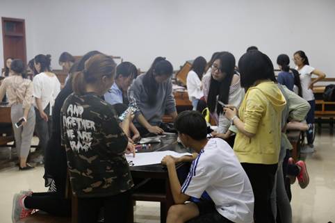 各小组成员配合进行了两个小游戏,让小组成员之间迅速熟悉起来。之后,她给每一组发了一张纸,每组同学在上面写上自己组的组名、画上自己组的海报,然后给所有同学展示和介绍。之后每一组在纸上写下六句话并写出三个自己认为最重要的品质,并给同学们解释了自己选择这三个品质的理由。最后,杨喣怡老师对每个小组做了点评,对体验课做了总结。
