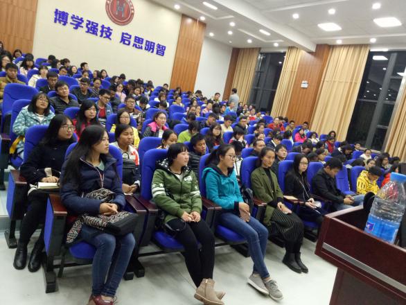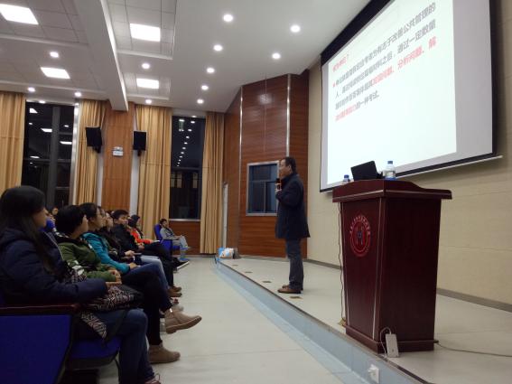 首先,朱永喜老师为大家解释了何为“申论”。朱老师讲道,申论是指假定应考者为有志于改善公共管理的人,通过阅读特定篇幅材料之后,通过一定数量题目作答体现其发现问题、分析问题、解决问题等能力的一种考试。这种考试选拔的是将来能代表政府进行公共事务管理的人才,因此应考者所表达的观点应该是客观公正,不带任何个人感情色彩的。接着,朱老师为大家分别讲解了申论常见的四种题型,即概括型、分析型、对策型及公文写作。朱老师结合大量事实例证,简明扼要地对上述题型进行了一一解读,每种题型都为大家提供了简便可行的解题方法,大家听得津津有味,受益良多。之后,朱永喜老师还结合自己的实践经历,跟大家分享了一些有关公务员考试面试的知识和应试技巧,该内容也深受大家欢迎。当然,短短两小时的讲座怎能满足台下同学的求知欲,讲座将尽,同学们争相发言询问,朱老师认真聆听并一一解答。最后大家在热烈的掌声中依依不舍地与朱老师告别。