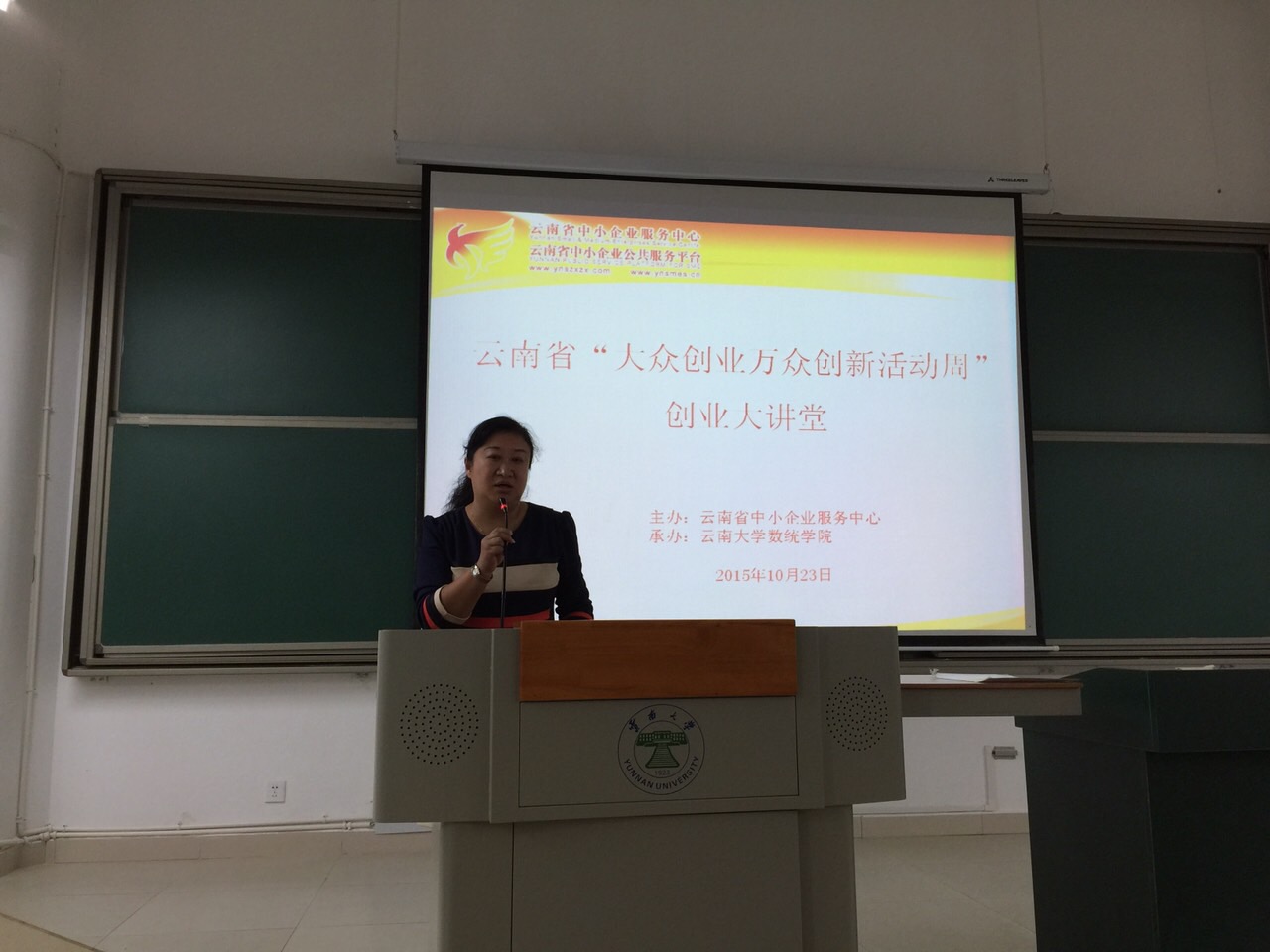 10月23日晚7点,威廉体育官方网站在力行楼1205举办了老员工创业指导培训讲座。此次讲座邀请了国家职业指导师杨煦怡,云南省工信委中小企业处代表王全会,昆明威豪计算机有限公司总经理罗凤梅,威廉体育官方网站城市建设与管理公司2011级李春仁同学。数学与统计公司党委副书记杜芳芳老师,辅导员鲁学伟老师、班主任参加了该讲座,吸引了公司近200多名同学参加。
