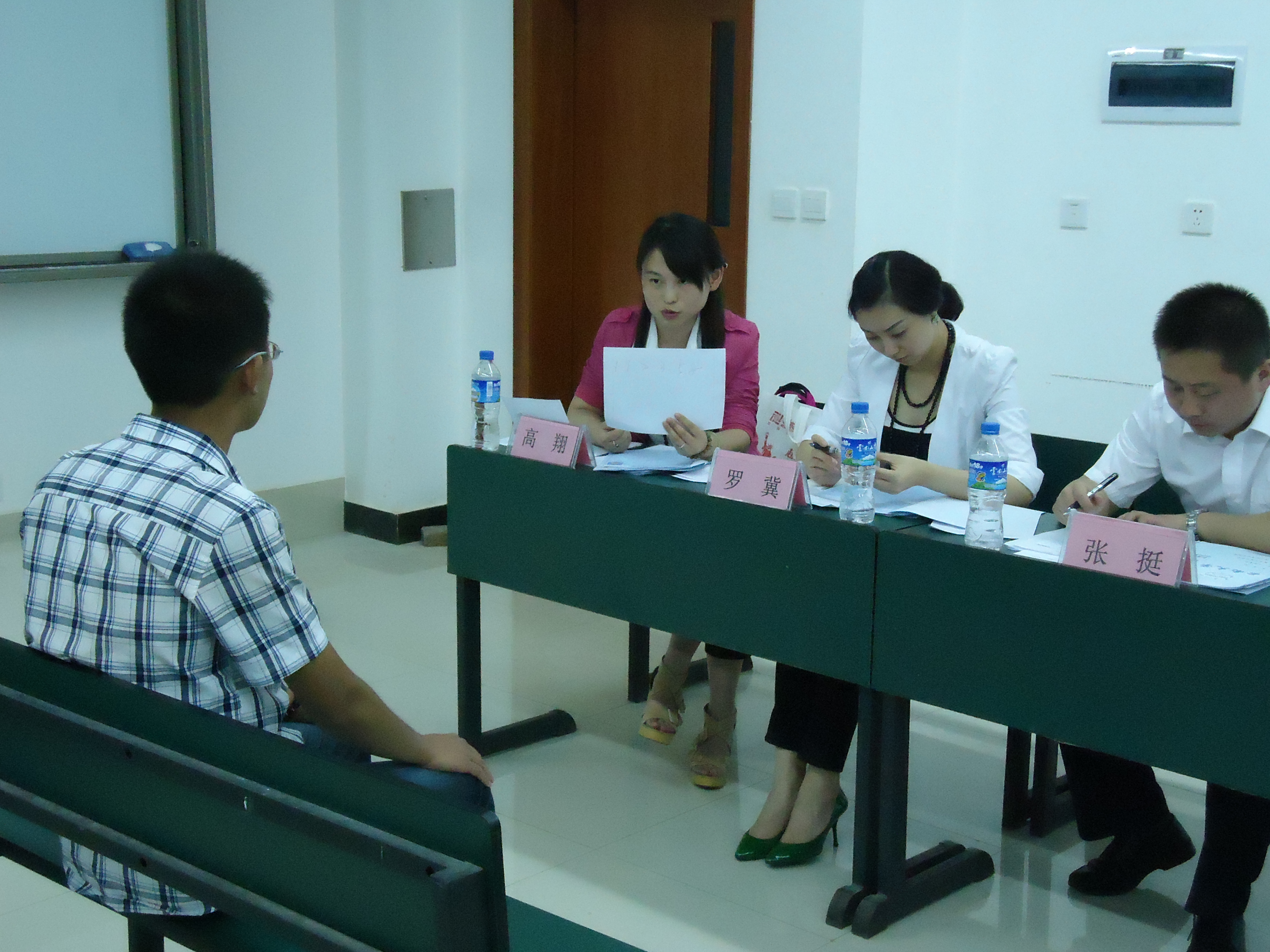 5月25日晚七点三十分,在格物楼2103举办了就业指导服务月的最后一项活动——模拟招聘大赛。泰康人寿、世联地产、新东方三家用人单位人力资源部负责人及员工处副处长李湘云老师,公司党委副书记杜芳芳老师担任本次模拟招聘大赛的面试官和嘉宾。选手们依次上台,向心仪的单位投递简历、自我介绍,面试官对其进行情景化面试,有的选手还展示了才艺,现场气氛十分活跃。本次模拟招聘大赛,以逼真的招聘现场,让同学们感受到了招聘过程,并了解了企业对人才的要求,很好地锻炼了同学们的能力,让同学们学会了好好规划自己的职业生涯。