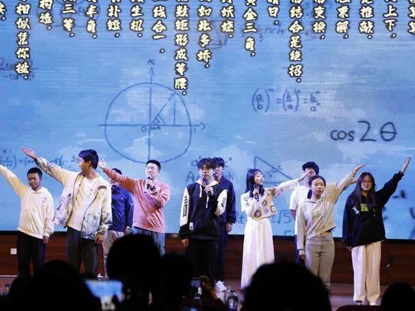 晚会以青协实践部和自律委外联部带来的《共舞辉煌》拉开序幕,展现团结的力量。研会综合部的《三句半》朗诵引发阵阵笑声,团委办公室的《青春回音·高中时光瑶》带领大家重温校园时光。团委科创部的《数与舞的交响》融合朗诵与歌舞,青协办公室的《回忆颂》用歌曲串烧唤起了青春记忆。