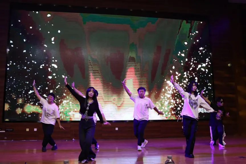 团委实践部的《日不落+晴天》和服协体育部的《混子面试+最炫民族风舞蹈》活力四射。团委组织部带来的《情歌小串》与新宣带来的《只因你太美+我的未来式》进一步展现了年轻的多彩,全场气氛再次高涨。