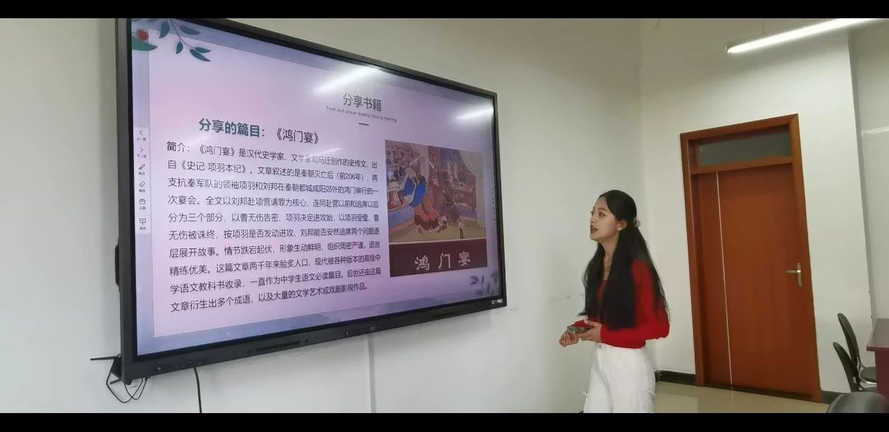 在分享结束时,罗玲玉同学总结发言:“《史记》不仅让我们对历史有了更为深刻的认识,更激发了我们对当代社会的深刻反思与启示。这些经典故事不仅描绘了历史人物的辉煌成就与人生悲剧,更深刻揭示了他们的决策、思想如何与时代背景紧密相连。通过阅读这些历史人物的生平事迹,我们能够更加透彻地理解历史的深邃与广阔,以及人性在历史长河中扮演的重要角色。”