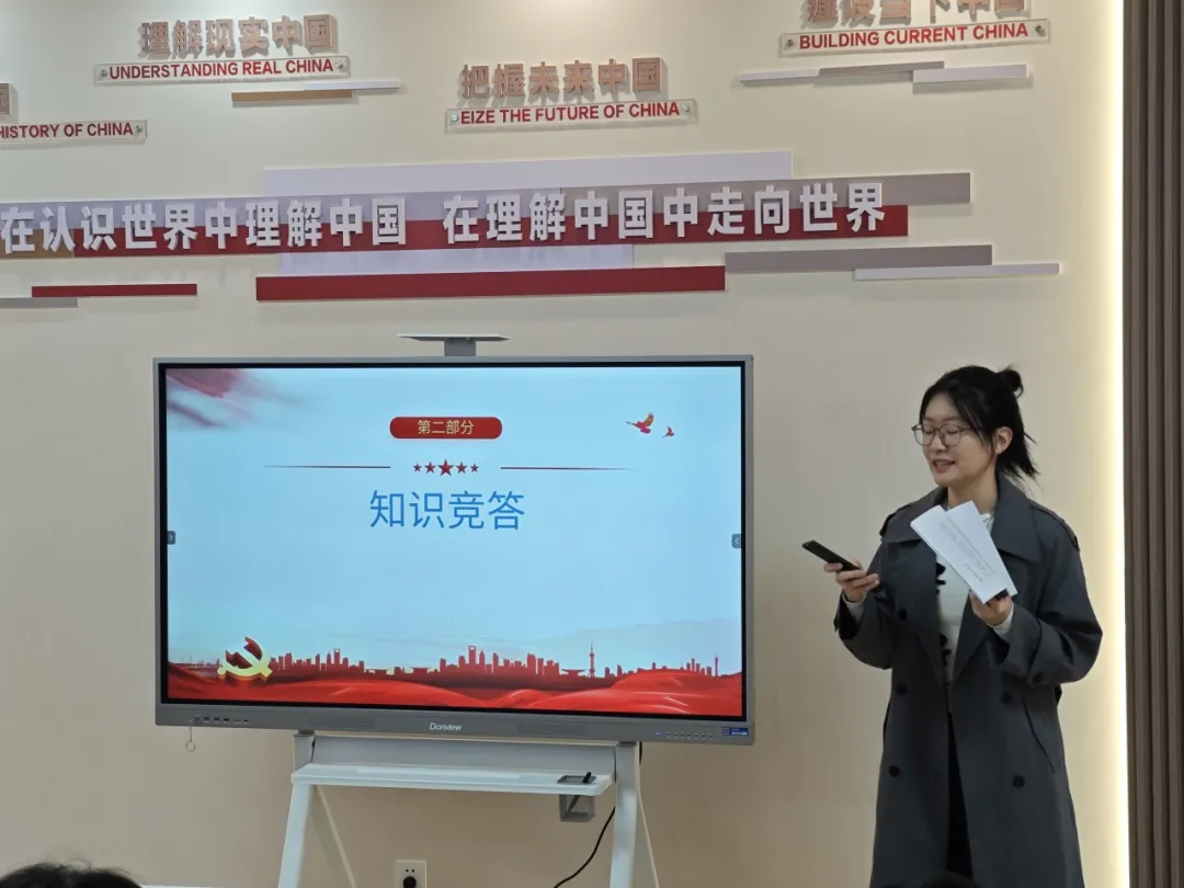 陈叶萱小组结合党的二十届三中全会精神分享了自己阅读《习近平的七年知青岁月》和《共产党宣言》的感触,并讲述了“作为新时代的青年人,我们应该发挥自己的智慧和力量,为国家的繁荣富强贡献自己的青春和热血;应该深入基层,了解国家的实际情况,通过实践增长才干,为国家的建设和发展提供有力的支持;应该在困难和挑战中锻炼自己,培养坚韧不拔的意志和品质,为实现个人的梦想和国家的目标而不懈努力;应该通过投身于国家的发展事业,在奉献中收获成长和进步,实现个人价值与社会价值的统一”。